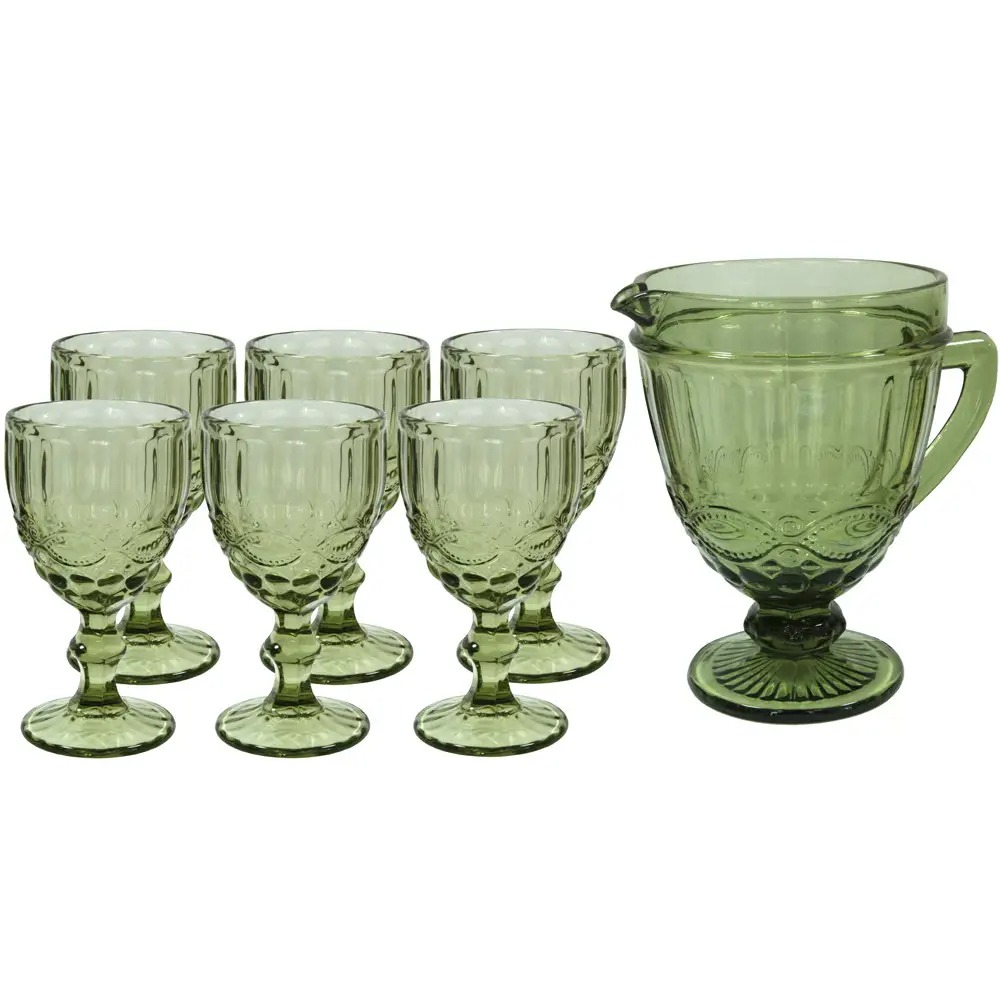 Набір Olens "Дзеркальний Смарагд 2" (6 бокалів+кувшин) блакитний, 01-018