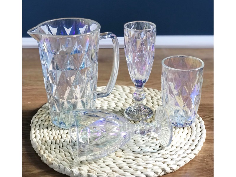 Його поверхня має вигляд ромбів, які відсвічуються різними кольорами веселки. Стильний і елегантний глечик підійде для інтер'єру будь-якої кухні.